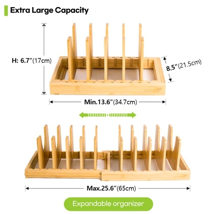 CLEANCLUE - منظم للاواني والمقالي تحت الخزانة من كلين كلو ادوات الخبز ولوح التقطيع الخيزران قابل للتمدد رف حامل اغطية الاواني للتعديل صينية خبز للتخزين في المطبخ