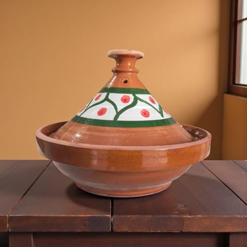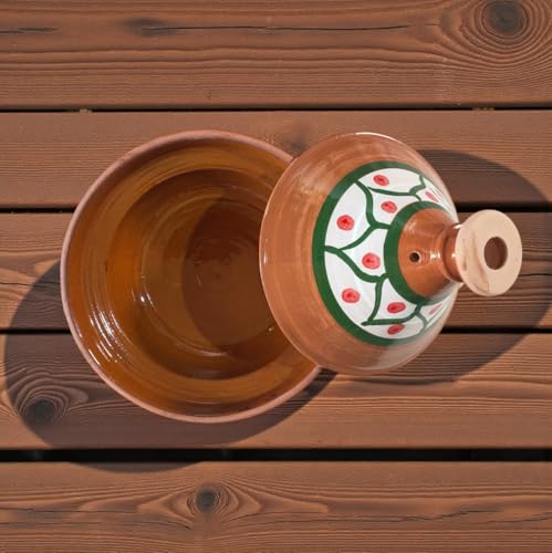- حله بغطاء من الفخار بشكل المغربي، آمن للاستخدام في الميكروويف، مصنوع يدويًا في مصر