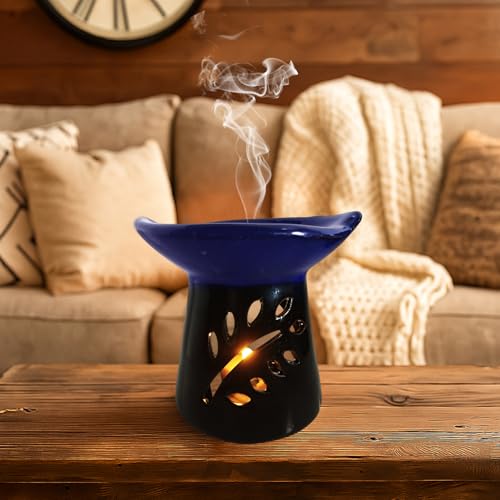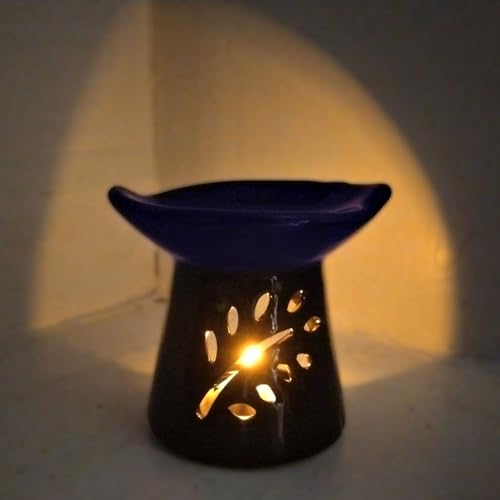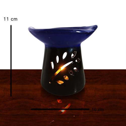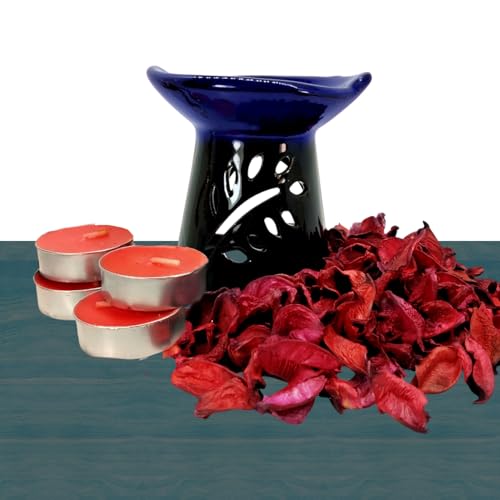 Generic - فواحة فخار للزيوت العطرية + 4 قطع شمع تى لايت + كيس ورد مجفف - اضافة للديكور و جو معطر يوحى بالهدوء والتناغم لمنزلك - تصلح كهدية - المناسبات الخاصة - عيد الأم (1, الورقة الزرقاء)