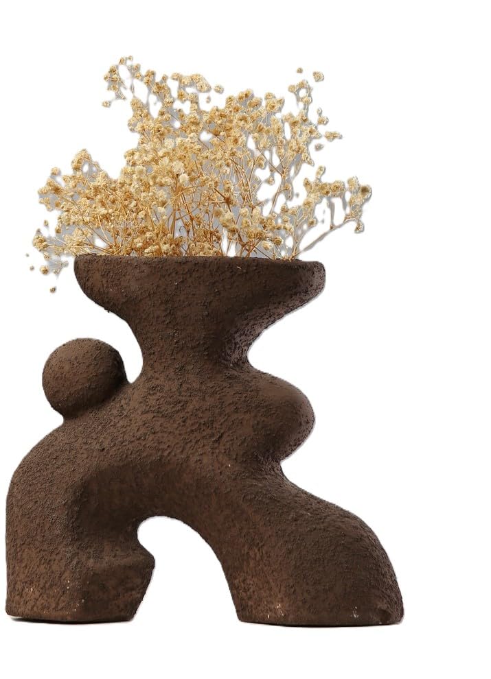 Generic - مزهرية فخار هارموني - مزهرية زهور سيراميك مصنوعة يدويًا بلمسة نهائية طبيعية - ديكور ريفي بسيط للزهور المجففة وعشب البامبا وتصميم المنزل الحديث (بني)