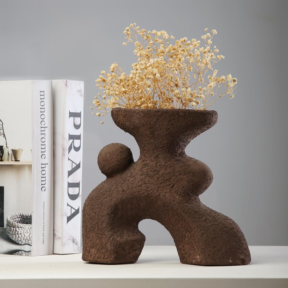 - تصميم مصنوع يدويًا: مزهرية سيراميك سوداء منحوتة بشكل فريد تتميز بصورة ظلية منحنية فنية مع جمالية عصرية وبسيطة مثالية لديكور المنزل المعاصر