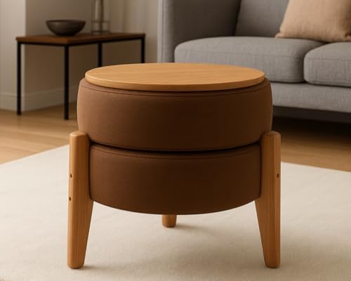 - تصميم عصري: مقعد دائري مبطن بقماش بني داكن مع أرجل خشبية متينة، يضيف لمسة أنيقة لأي غرفة معيشة