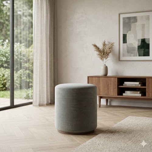 Generic - كرسي بوف "بين باج" مودرن مخملي - مقعد دائري عثماني (Ottoman) لغرفة المعيشة والنوم، تصميم اسطواني ناعم - لون رمادي فاتح