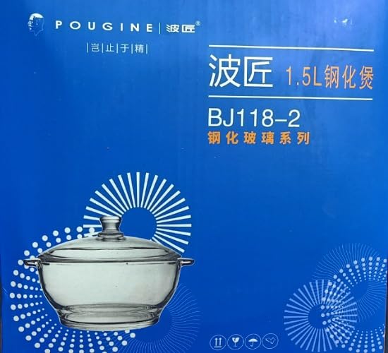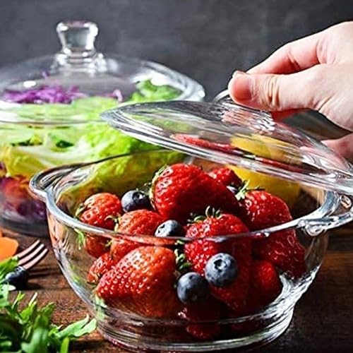 Generic - كسرولة زجاجية بغطاء زجاجي سعة 1.5 لتر من بوجين شفاف