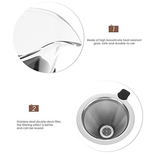 Liwes - ماكينة تحضير القهوة 400 مل من زجاج البوروسيليكات عالي الجودة مع فلتر ستانلس ستيل قابل لاعادة الاستخدام