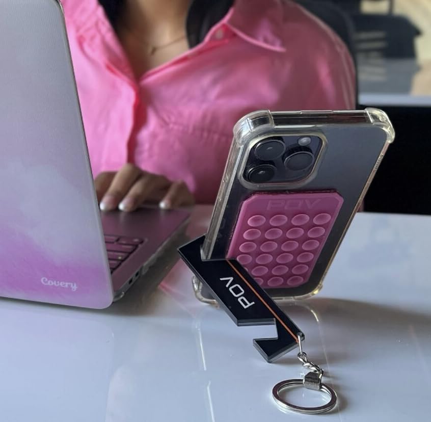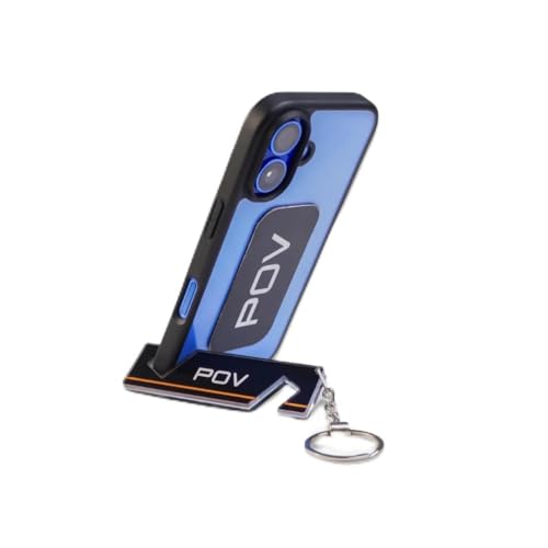POV - بي او في سلسلة مفاتيح وحامل هاتف معدني، اسود