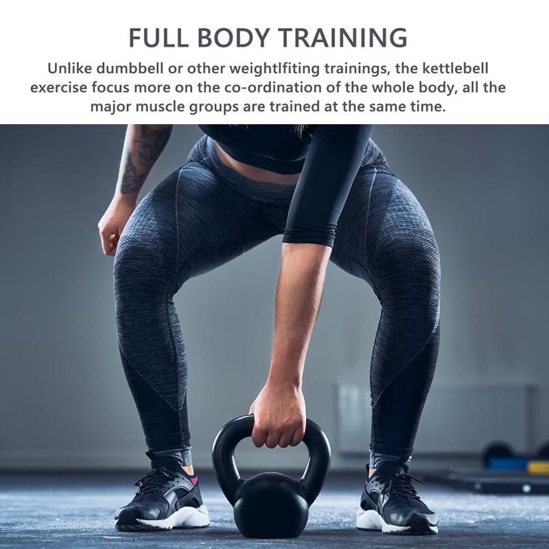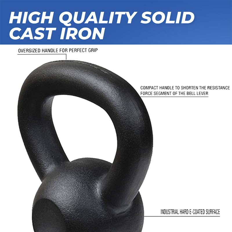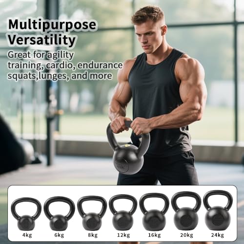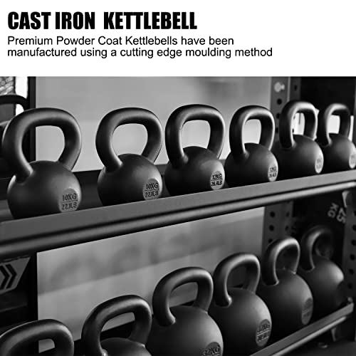 IW IWORKOUT - أوزان كيتل بيل من الحديد المصبوب المطلي بمسحوق، أوزان كيتل بيل كلاسيكية، بلون أسود ووزن 4 كجم - 48 كجم، لصالة الجيم المنزلية وتمارين اللياقة البدنية والتمارين الرياضية وتدريب رفع الأوزان