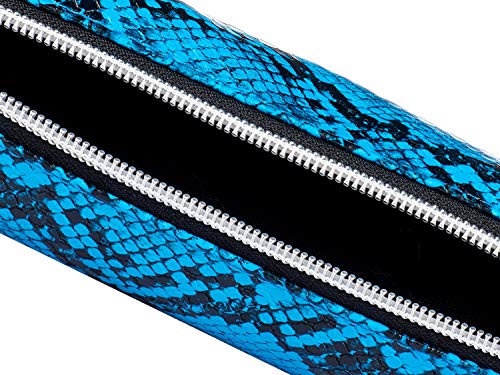 Powell Creative - مقلمة بسوستة ونقشة جلد ثعبان نيون من باول كريتيف FSPC19243 - ازرق واسود