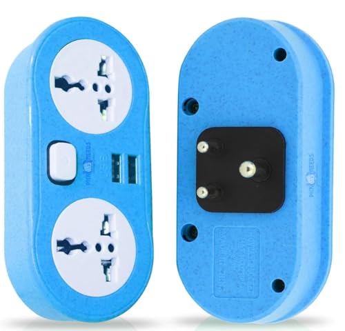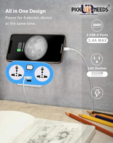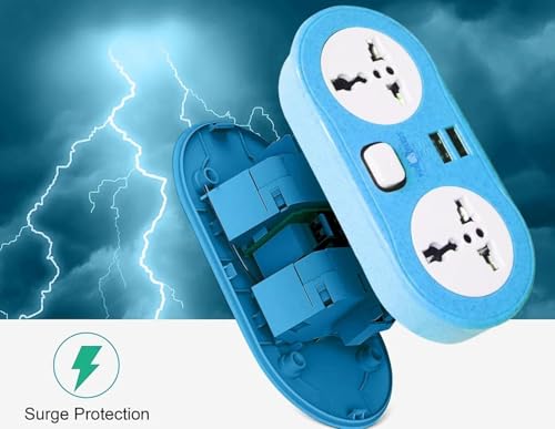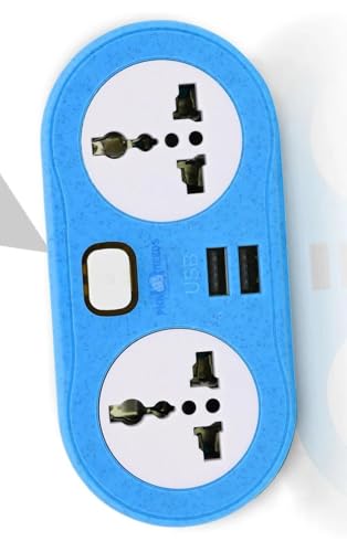 Generic - مشترك كهرباء موديل E02 عالمي ب2 منفذ كهرباء و2 منفذ USB بقدرة 2500W مع مفتاح أمان، شاحن متعدد الاستخدامات للمنزل والمكتب والسفر (أزرق)