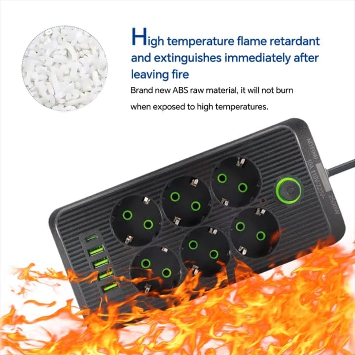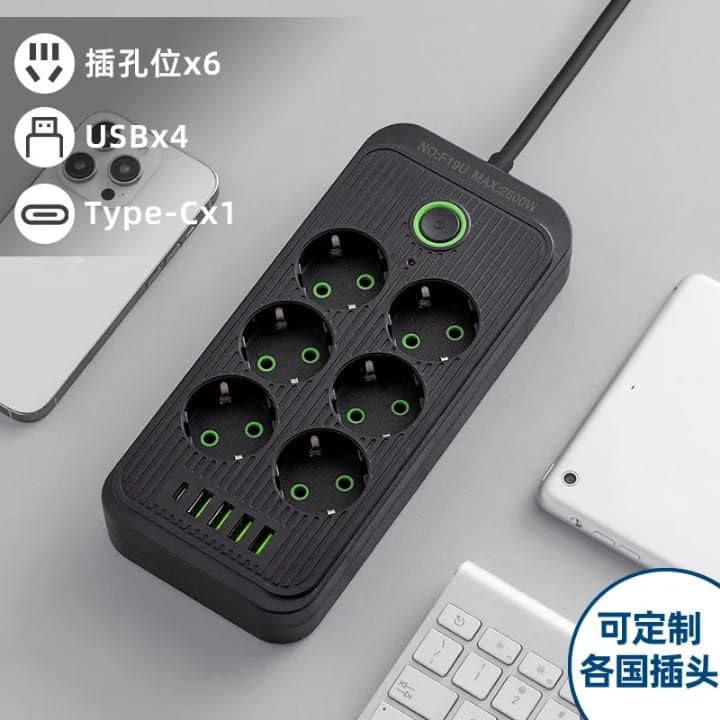 Generic - مقبس تمديد الطاقة 606U بعدد 6 منافذ و4 منافذ USB، محول قابس عالمي مع مفتاح 2500 وات وكابل بطول 2 م، شاحن متعدد المقابس للمنزل والمكتب والإلكترونيات
