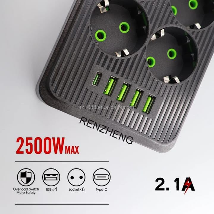 - تصميم ذكي وآمن يتحمل حتى 2500 وات، ويتميز بمقبس عالمي يناسب المقابس المصرية والأوروبية، مما يضمن السلامة والتوافق في المنزل أو المكتب.