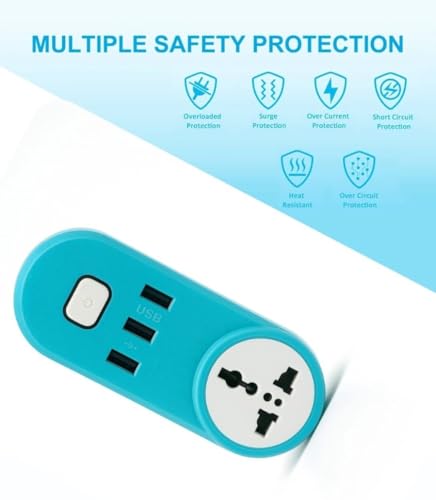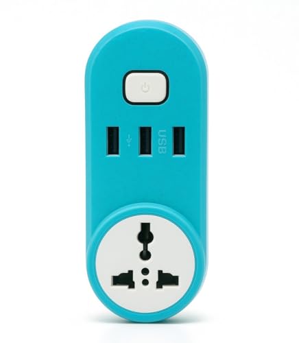 Generic - مشترك ومحول طاقة E-01 2500 وات مع 3 منافذ شحن USB ومفتاح طاقة مع شحن تلقائي بحد أقصى 10 امبير وميزة الحماية من الحمل الزائد والحماية من تدفق التيار مناسب للمنزل أو أثناء السفر (أزرق)