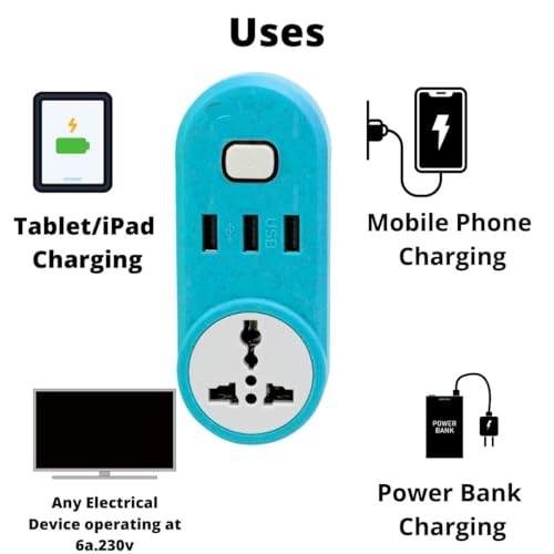 - حوّل مشترك واحد إلى خمسة - يوفر هذا المشترك الكهربائي 3 منافذ تيار متردد بالإضافة إلى منفذين USB ذكيين، مما يوفر شحن 10 امبير كحد أقصى للموبايلات واللاب توب والمروحة بدون الحاجة إلى التزاحم اليومي على المقابس.
