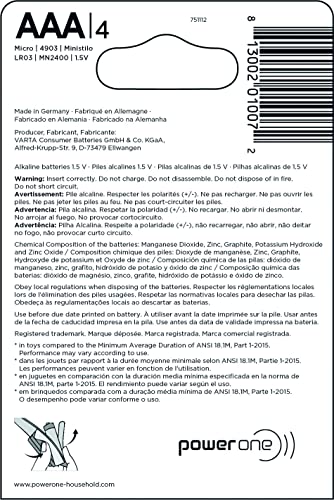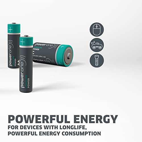 PowerOne - بطاريات قلوية لونج لايف باور AA مصنوعة في ألمانيا بعمر افتراضي يصل إلى 10 سنوات من باور ون، 4 قطع