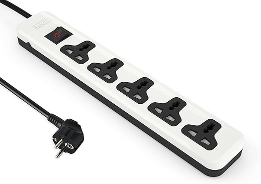 Generic - مشترك كهرباء 5 منافذ عالمية مع مفتاح (ابيض)