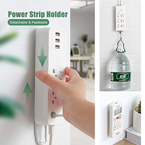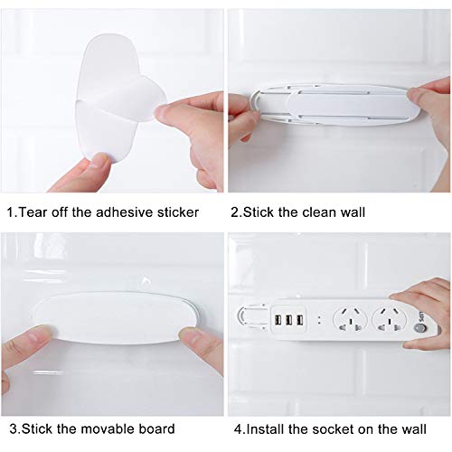 JTMM - مثبت دعامة مشترك الطاقة بدون ثقوب، يوصل في مقبس الحائط، مثبت لاصق، حامي يثبت على الحائط للمكتب والحائط وجهاز راوتر الواي فاي، 4 عبوات