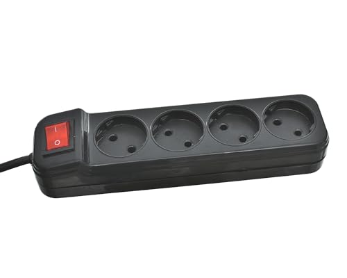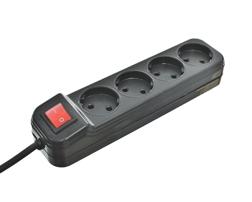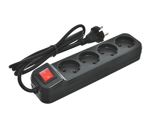 Generic - مشترك كهرباء بقابس أوروبي عالي الجودة بأربعة منافذ وكابل زر تحكم قوة 10 امبير 220 فولت لون أسود وأحمر، طول 1.5 م.