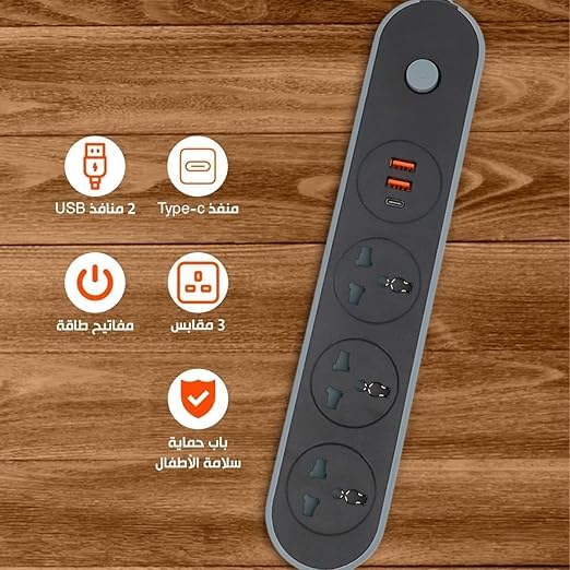 - وصلة تمديد الطاقة بـ 3 منافذ مع 2 USB و1 نوع C تحافظ على جميع أجهزتك مشحونة بأمان في المنزل أو المكتب. حماية من الحمل الزائد توقف المفاجآت، مما يمنحك راحة البال أثناء تشغيل أجهزة اللاب توب والهواتف والتابلت.