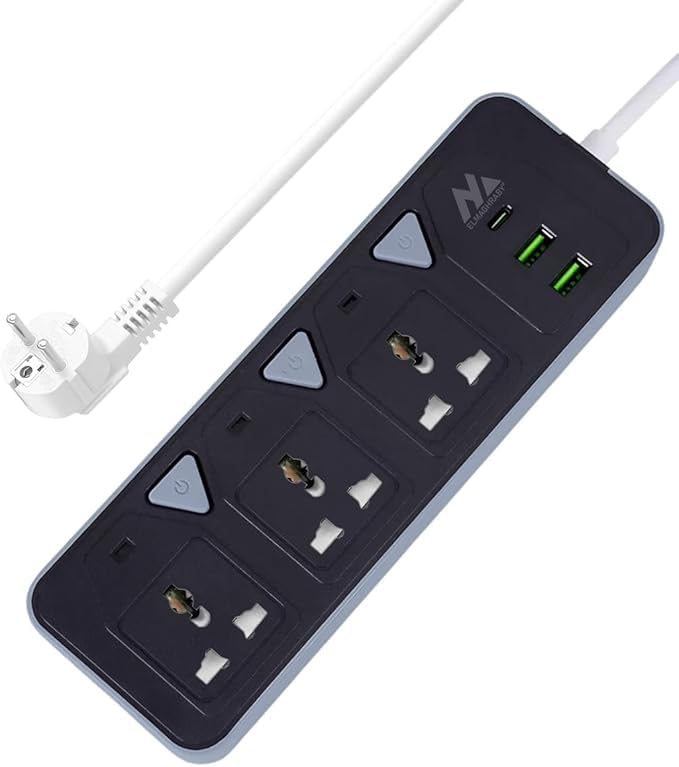 Generic - قاعدة شحن مقبس تمديد الطاقة مع 3 منافذ ومنفذين USB ونوع سي للمنزل والمكتب