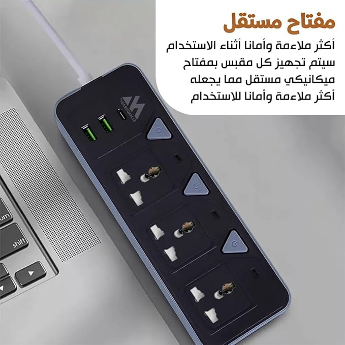 - قم بتشغيل العديد من الأجهزة باستخدام شريط الطاقة هذا بقدرة 2500 واط والذي يتميز بـ 3 منافذ ومنفذي USB ومنفذ واحد من النوع C لشحن سريع وفعال.