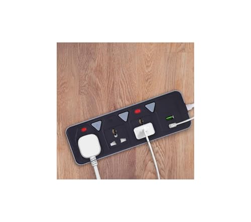 Generic - مشترك كهرباء مع 5 فيش، 2 منفذ USB، منفذ USB نوع C، حماية من الحمل الزائد وقفل آمان للأطفال