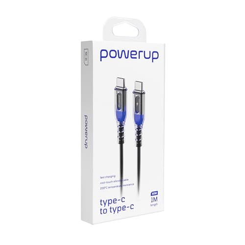 Powerup - كابل سيليكون للشحن السريع من النوع سي إلى نوع سي 60 وات من باور اب، طول 1 متر، لون أبيض