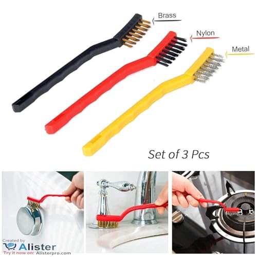 Generic - فرشاة سلكية قوية لإزالة التلوث من مواقد الغاز البلاستيكية وأدوات المطبخ: مجموعة متعددة الألوان مكونة من 3 قطع لتنظيف الفجوات الصغيرة بعمق, الآن فى 🏅 امازين