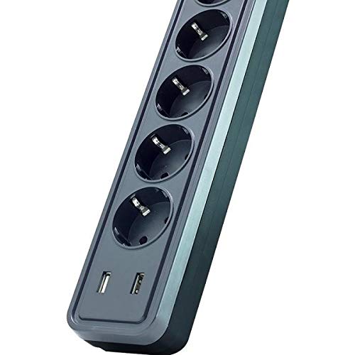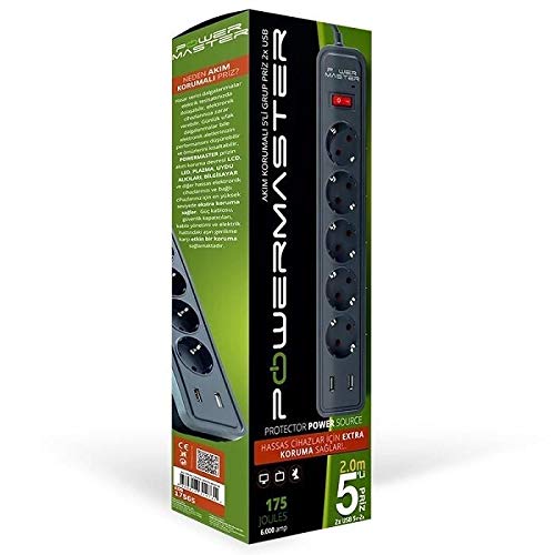 Powermaster - باورماستر مشترك طاقة بـ5 مقابس و2 منفذ شحن يو اس بي بتيار 2 متر