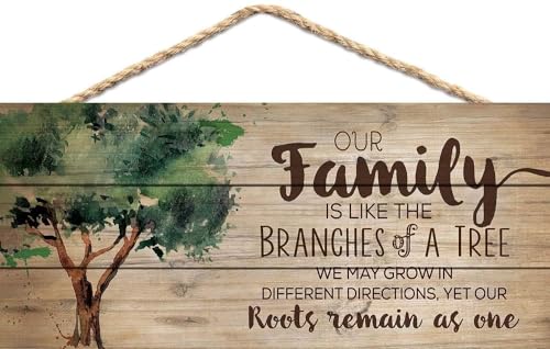 POWERMAZ - لافتة معلقة بتصميم لوح خشبي بتصميم عبارة Our Family Like Branches on a Tree مقاس 12.7 × 25 سم من باورماز (BW711)