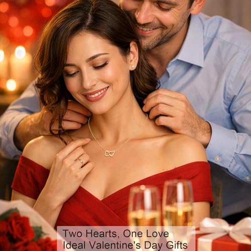Poxtex - سلسلة أنيقة طبقات بدلاية على شكل قلب للنساء من بوكستكس، مجوهرات انفينيتي مرصعة بأحجار الزركونيا المكعبة للحبيبة والأم والإبنة والصديقة والجدة ولعيد الأم وعيد الحب وعيد الميلاد والكريسماس