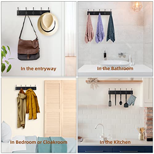 POZEAN - بوزان خطافات معطف تثبت على الحائط من قطعتين رف المعاطف والقبعات مع 10 حائط خشبي للمدخل للحمام وغرفة النوم اسود