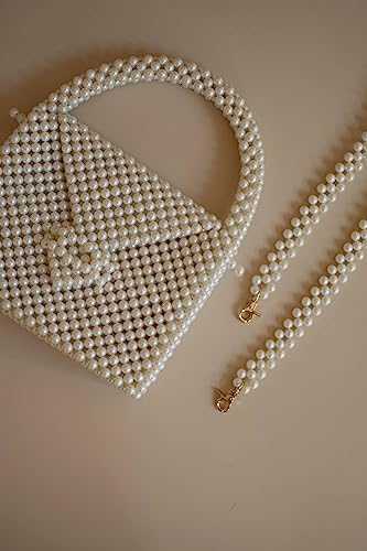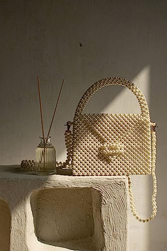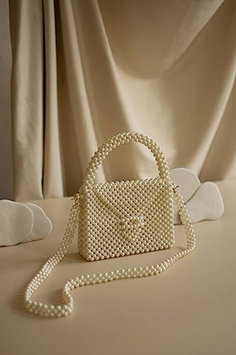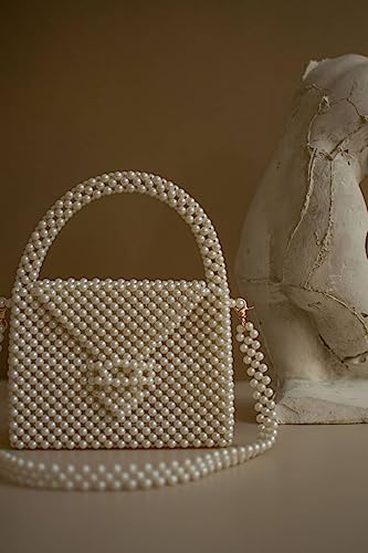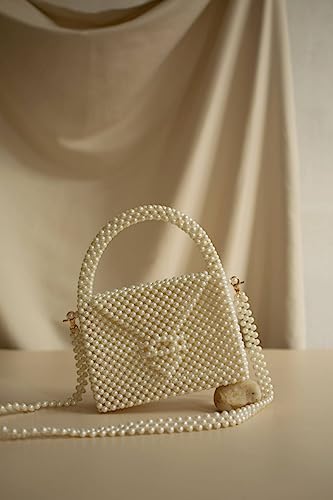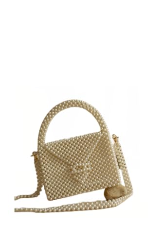 PR HAND WORKS - شنطة يد بيضاء فاخرة مزينة بخرز لؤلؤي من بي ار هاند ووركس كتف للاجتماعات الرسمية والحفلات للنساء