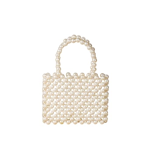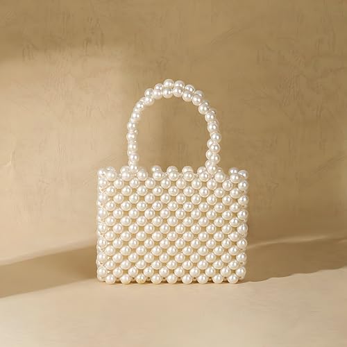 PR HAND WORKS - شنطة يد بيد علوية مزينة باللؤلؤ للنساء من بي ار هاند ووركس ، صغيرة عصرية أبيض