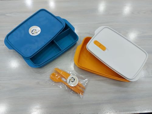 Generic - مجموعة لانش بوكس 3 قطع عملية | علب طعام بسعة 1 لتر (مقسمة وغير مقسمة) مع أدوات مائدة متكاملة | مصنوعة من PP-5 آمن غذائيًا | مثالية للوجبات الصحية اليومية H (ازرق)