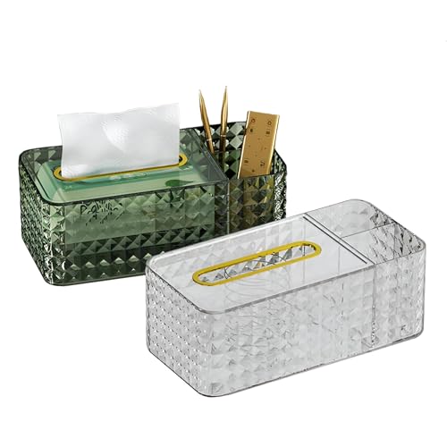 Generic - صندوق مناديل أكريليك عملي وعصري: يحتوي على 3 أقسام منفصلة لسهولة الوصول إلى أدوات المكياج أو العناية الشخصية أو جهاز التحكم عن بعد