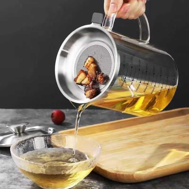 AREXOL - دورق زيت زجاجي حراري بسعة عملية مع غطاء وصفاية ستانلس ستيل للتحكم بالنقاء والكمية في الطهي اليومي