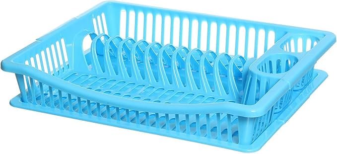 Generic - منشر صحون من آر إتش، مصنوع من الستانلس ستيل والبلاستيك، لون أزرق، مناسب لأواني المطبخ، متين البناء وكبير السعة، حجم كبير