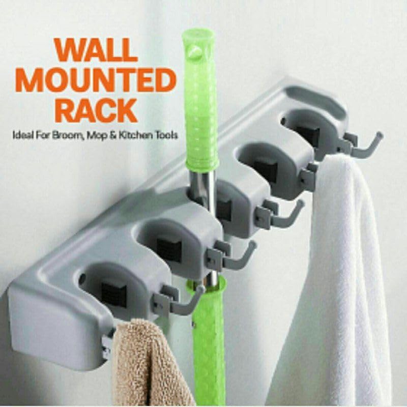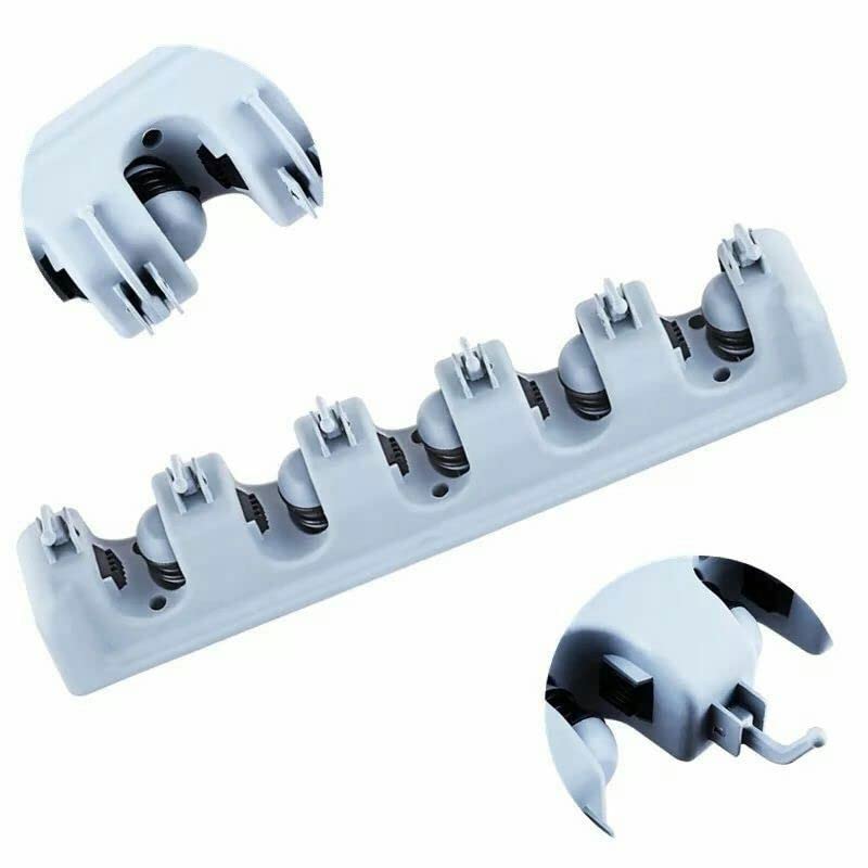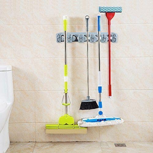 Generic - حامل مكانس خماسي عملي لتنظيم أدوات التنظيف – منظم حائط متعدد الاستخدام مع هوكات لتعليق الفوط والجاروف والفرش