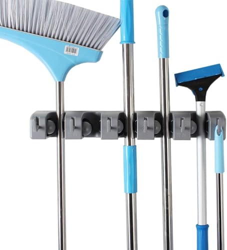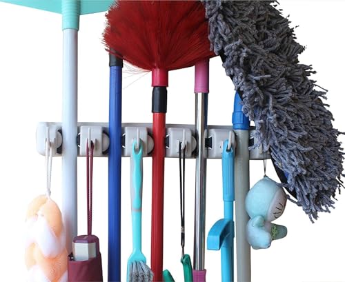 AREXOL - حامل مكانس خماسي عملي لتثبيت أدوات التنظيف بسعة خمس خانات مع علاقات قوية للفوط والمقشات والمساحات للحمام والمطبخ خامة متينة وسهلة التركيب للاستخدام اليومي