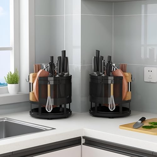 Generic - رف مطبخ عملي - منظم دوار مصمم لتخزين عيدان تناول الطعام وتنظيم سطح المطبخ، كما يعمل كرف تجفيف للملاعق والسكاكين لمستلزمات المطبخ (2 منظم)
