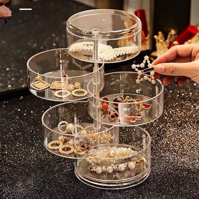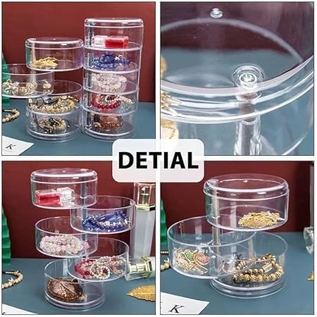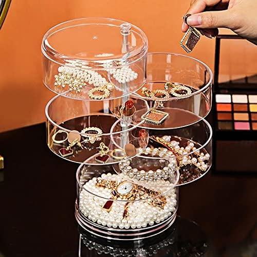Generic - صندوق مجوهرات عملي متعدد الطبقات دوار للتخزين والعرض، منظم مجوهرات دوار 3/4/5 مستويات، حاوية صندوق مجوهرات دوار شفاف متعدد الطبقات (موديل 1)