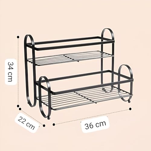 - يوفر التصميم المكون من طبقتين تخزينًا ذكيًا من خلال استخدام المساحة الرأسية بشكل فعال، مما يساعدك على تخزين المزيد من الأشياء في منطقة صغيرة دون أن يشغل مساحة كبيرة على منضدة المطبخ أو رف الحمام.
