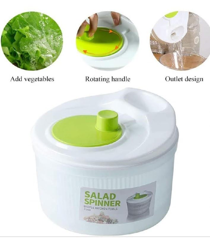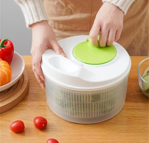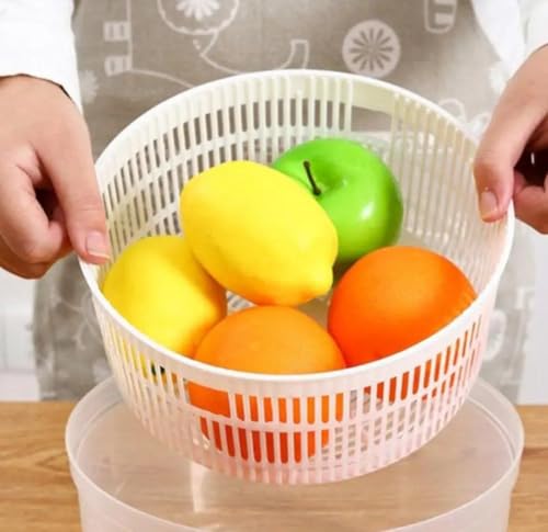 - تصميم ذكي يجمع بين الغسيل والتجفيف في خطوة واحدة: يمكنك غسل الخضروات الورقية والسلطة بسهولة باستخدام السلة المدمجة، ثم تدوير المقبض لتجفيفها بسرعة دون الحاجة لمجهود إضافي أو مناديل مطبخ.