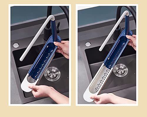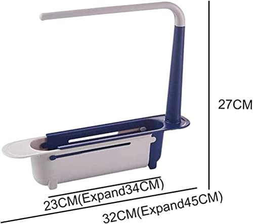 PRAGOO - حامل رف تخزين تلسكوبي للحوض حوض قابل للتوسيع مع منشفة لمنظمات المطبخ لعلبة الاسفنج بلاستيك ازرق .