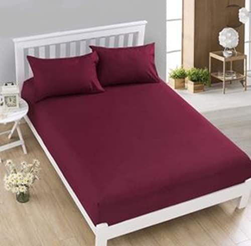 Generic - طقم ملايه من الحمد -قطن بيور استك 3 قطع - مثبته 140x200 مع 2 كيس خداديه 50x70 نبيتى غامق سادة زهري