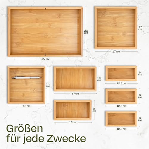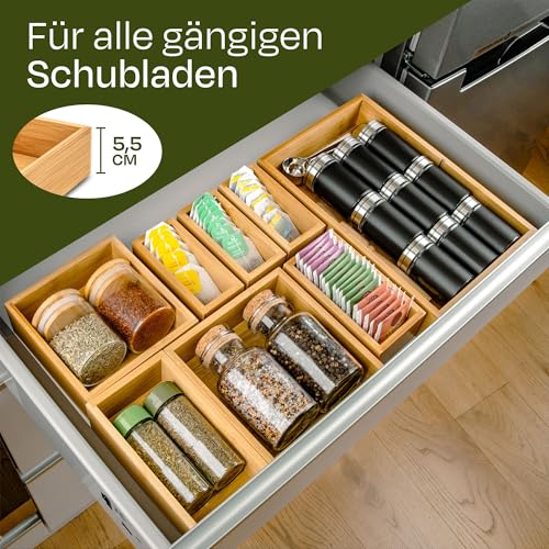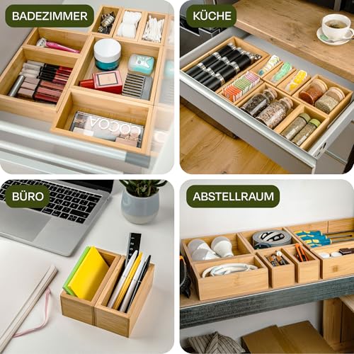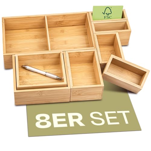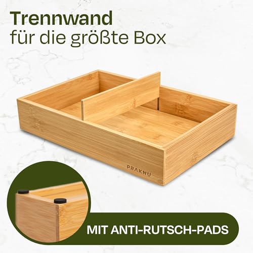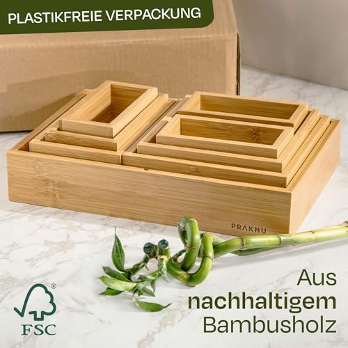 Praknu - مجموعة صناديق تنظيم الادراج مكونة من 8 قطع - مصنوعة من خشب الخيزران اف اس سي المستدام - مع وسادات مضادة للانزلاق