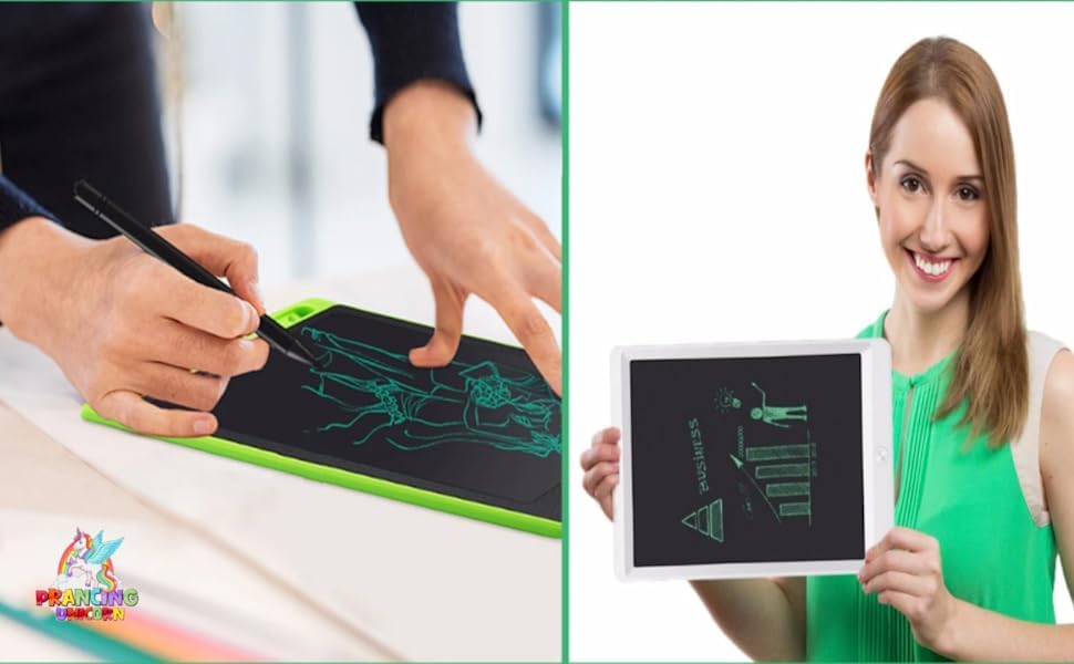 Prancing Unicorn - تابلت كتابة بشاشة LCD بتصميم يونيكورن للأطفال من سن 3-4-5 سنوات 8.5 بوصة، لوح كهربائي محمول لتعلم الكتابة قابل للمسح مع قلم (أسود وأبيض)
