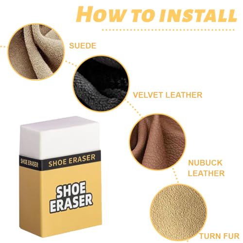 - الاستخدام: تزيل ممحاة الأحذية البقع والعلامات من الجلد المصقول وجلد البقر والأحذية المخملية والشمواه والأحذية الطويلة والأرائك المصنوعة من الشمواه والمفروشات ومقاعد السيارات والمفروشات الجلدية