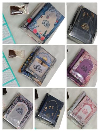 - مصحف بحجم متوسط بنفس لون السجادة، بتصميم أنيق يسهل حمله وقراءته، ليكون رفيقًا دائمًا في أوقات التدبر والتلاوة.