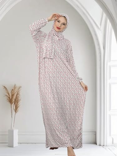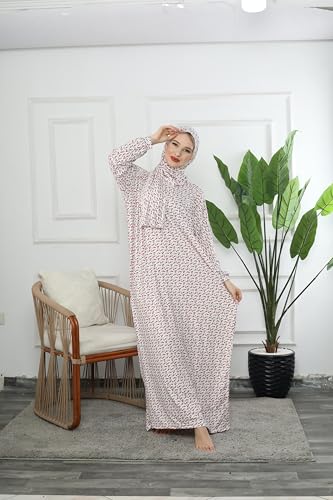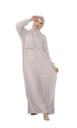 Generic - اسدال صلاة للنساء، مصنوع من قماش الزبدة، باللون الوردي، مقاس كبير، بتصميم زهري مع طرحة متصلة